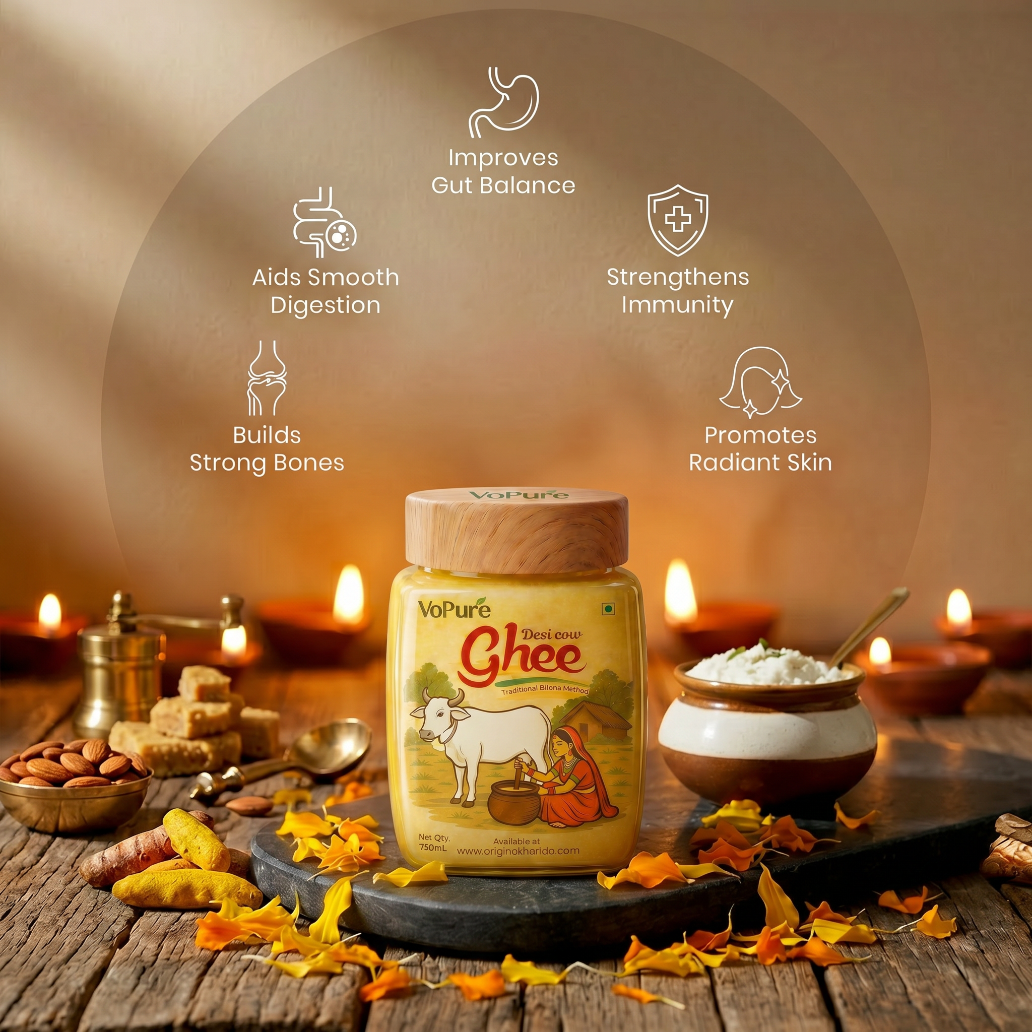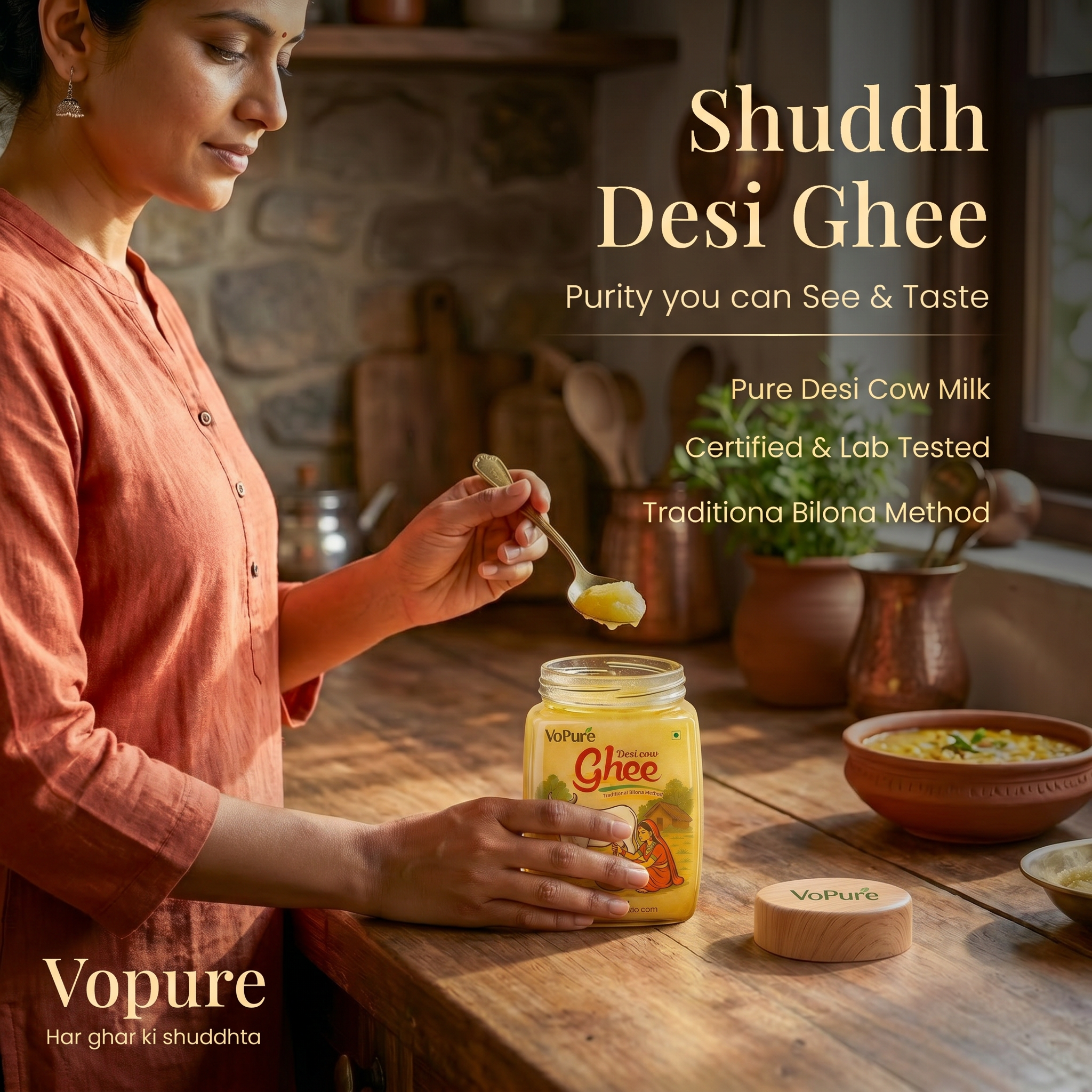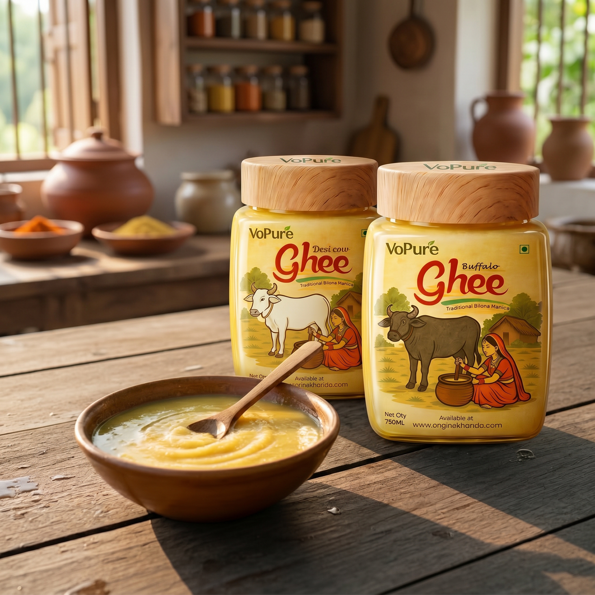 Bring home the perfect blend of taste, nutrition, and tradition with the VoPure Cow + Buffalo Desi Ghee Combo Pack. This premium combo gives you the goodness of both Cow Ghee and Buffalo Ghee in one pack, making it ideal for daily cooking, festive recipes, sweets, parathas, and traditional Indian meals.